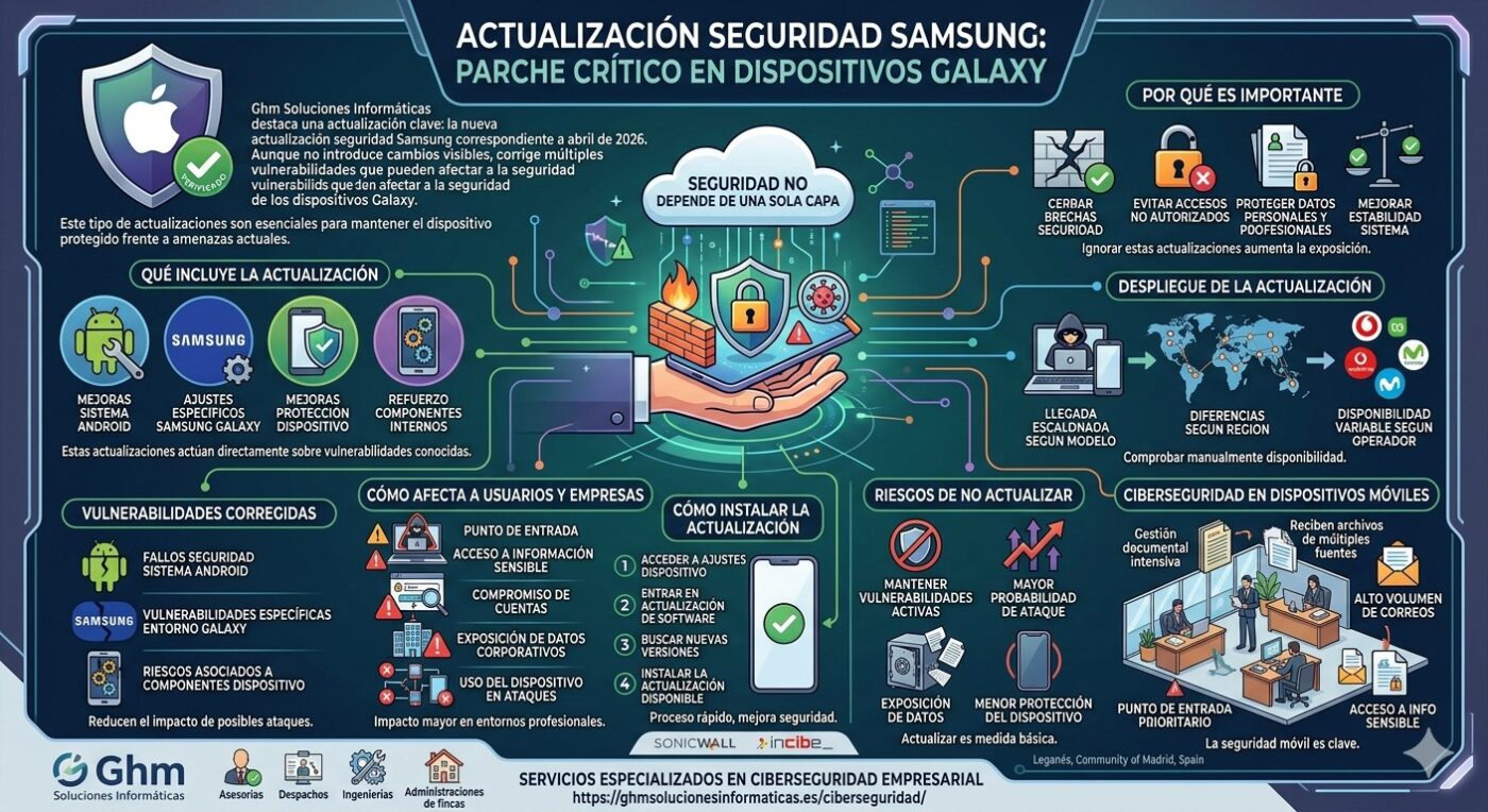 En Ghm Soluciones Informáticas destacamos una actualización clave: la nueva actualización seguridad Samsung correspondiente a abril de 2026.
