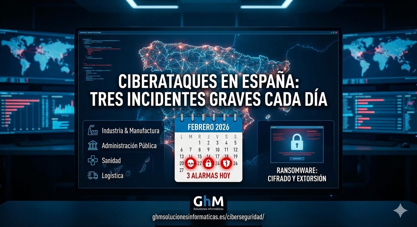 Publicado 21 febrero, 2026 en 1408 &veces; 768 en Ciberataques en España: tres incidentes graves cada día