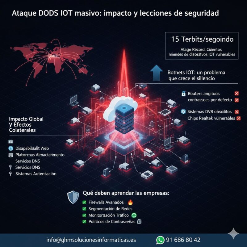 El reciente ataque DDoS IoT dirigido contra infraestructura en la nube ha encendido todas las alarmas del sector tecnológico. Una ofensiva de enorme magnitud, generada desde cientos de miles de dispositivos conectados, ha demostrado de nuevo el peligro creciente que representan los routers domésticos y las cámaras IP comprometidas. La saturación alcanzó niveles históricos y confirma que las botnets IoT se han convertido en una amenaza global difícil de contener.