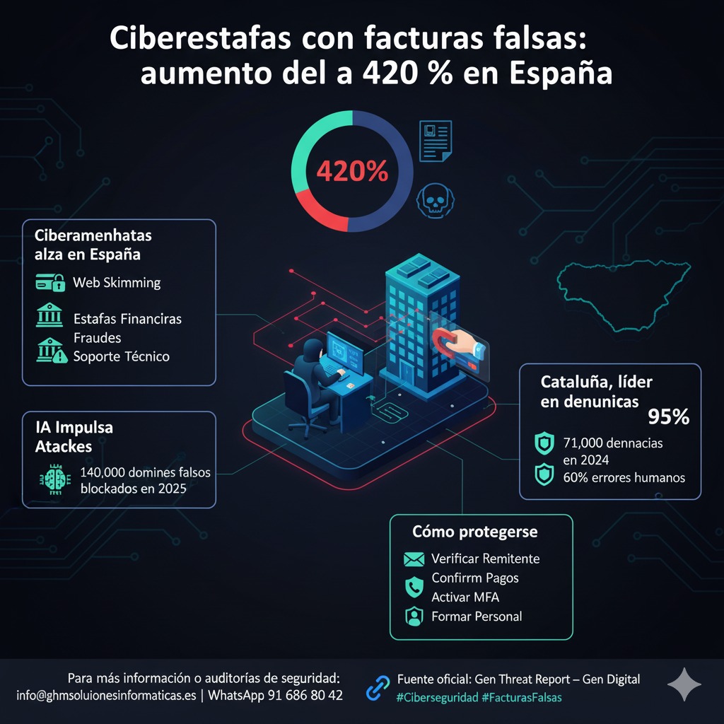 Publicado 17 noviembre, 2025 en 1024 &veces; 1024 en Ciberestafas con facturas falsas: aumento del 420 % en España
