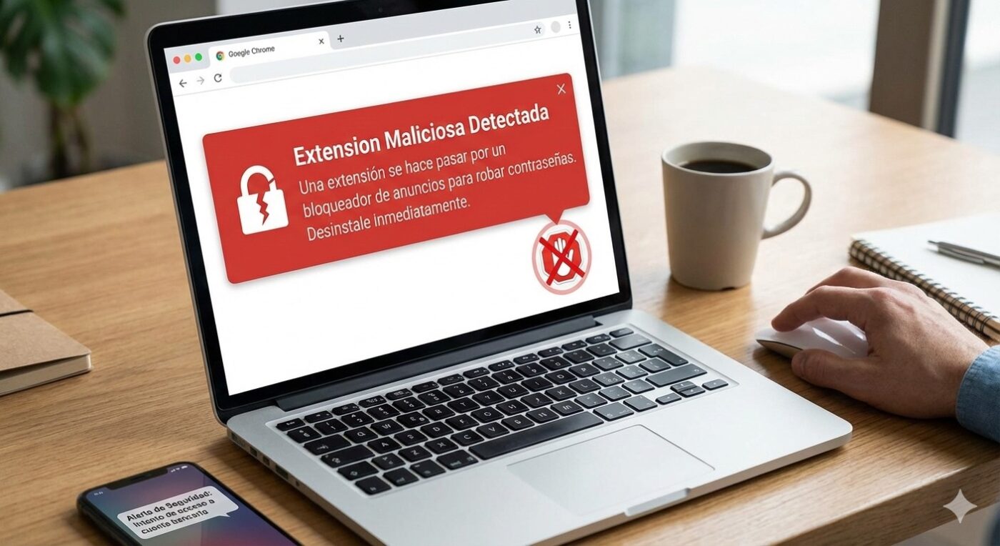 Una extensión maliciosa Chrome que se hacía pasar por un bloqueador de anuncios legítimo ha sido identificada como responsable del secuestro del navegador y del robo masivo de contraseñas. La amenaza afecta tanto a Google Chrome como a Microsoft Edge y demuestra, una vez más, que las extensiones siguen siendo uno de los vectores de ataque más infravalorados.