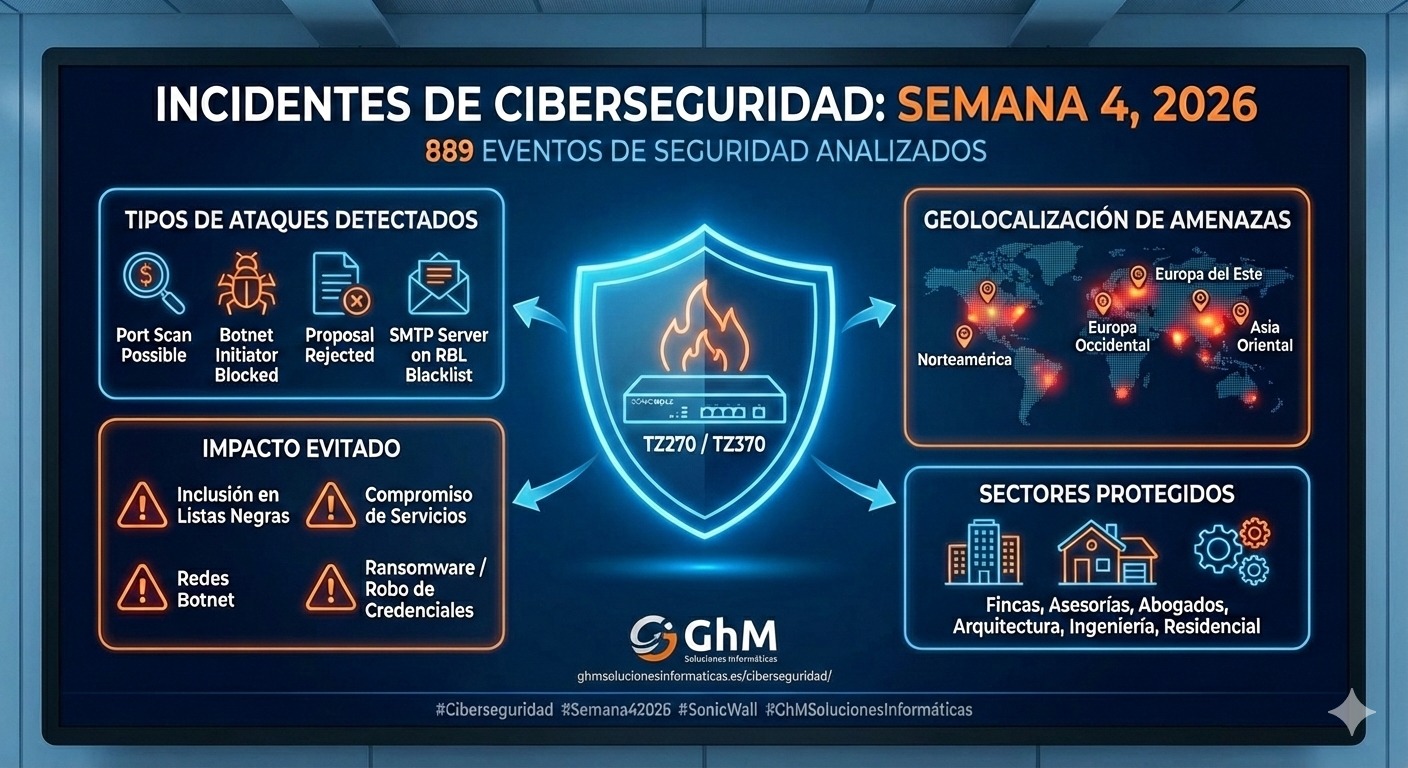 Publicado 26 enero, 2026 en 1408 &veces; 768 en Incidentes de ciberseguridad semana 4 de 2026: análisis real de 889 ataques bloqueados