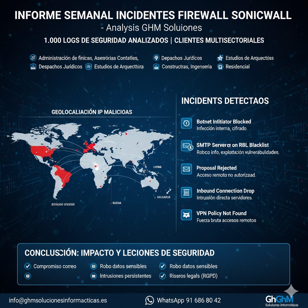 Publicado 15 diciembre, 2025 en 1024 &veces; 1024 en Incidentes de ciberseguridad semanal: análisis de 1000 logs y nuevas IP maliciosas bloqueadas por SonicWall – Semana 50 del 2025.
