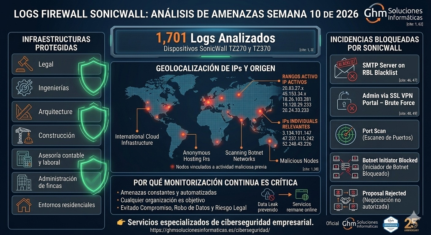 Publicado 9 marzo, 2026 en 1408 &veces; 768 en Logs firewall SonicWall: análisis de amenazas semana 10 de 2026