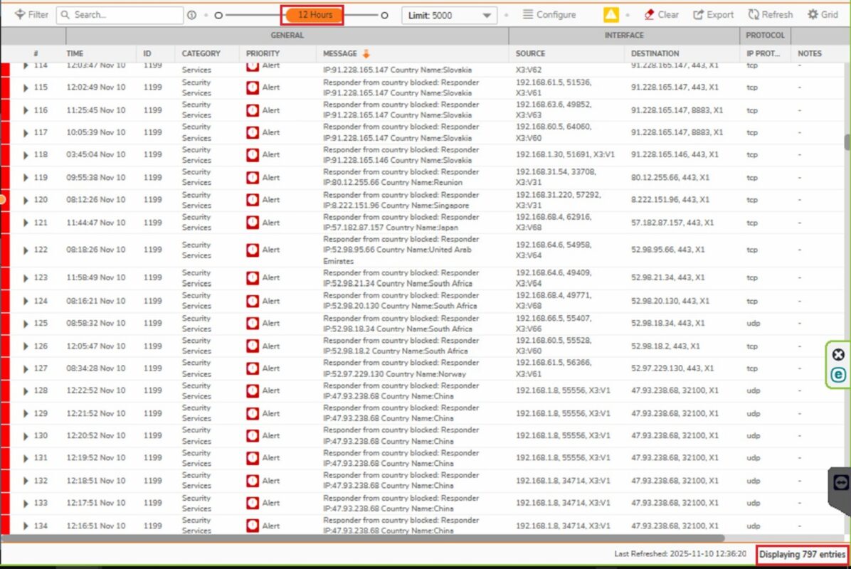 Gracias al filtrado GEO IP, solo se permite el tráfico procedente de la Unión Europea, Reino Unido y Estados Unidos, lo que garantiza que ningún intento de acceso externo pueda comprometer la confidencialidad de los datos.